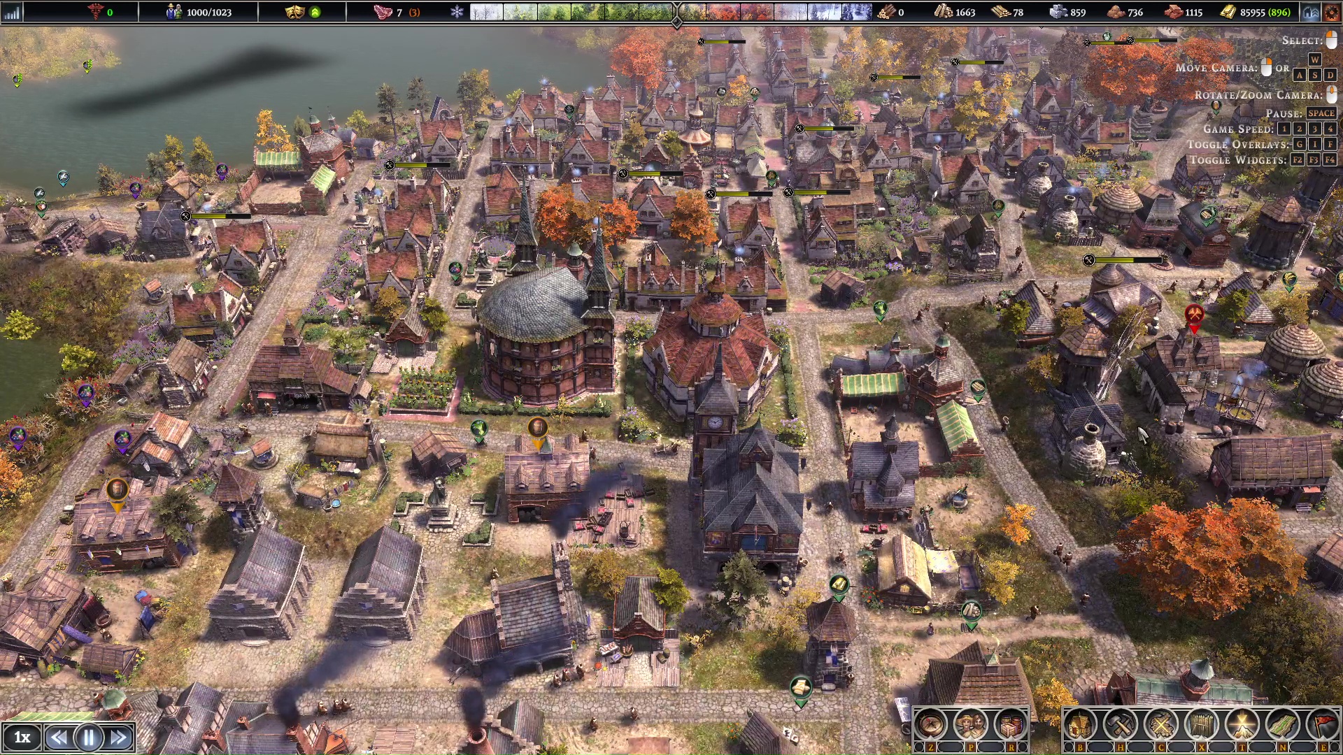 Verder allemaal routinematig handelingen en wachten op volgende ziekte-epidemie, komst van traders, aanvallen van indringers, of .... nieuwe gebouwen bij een volgende release-versie van Farthest Frontier.