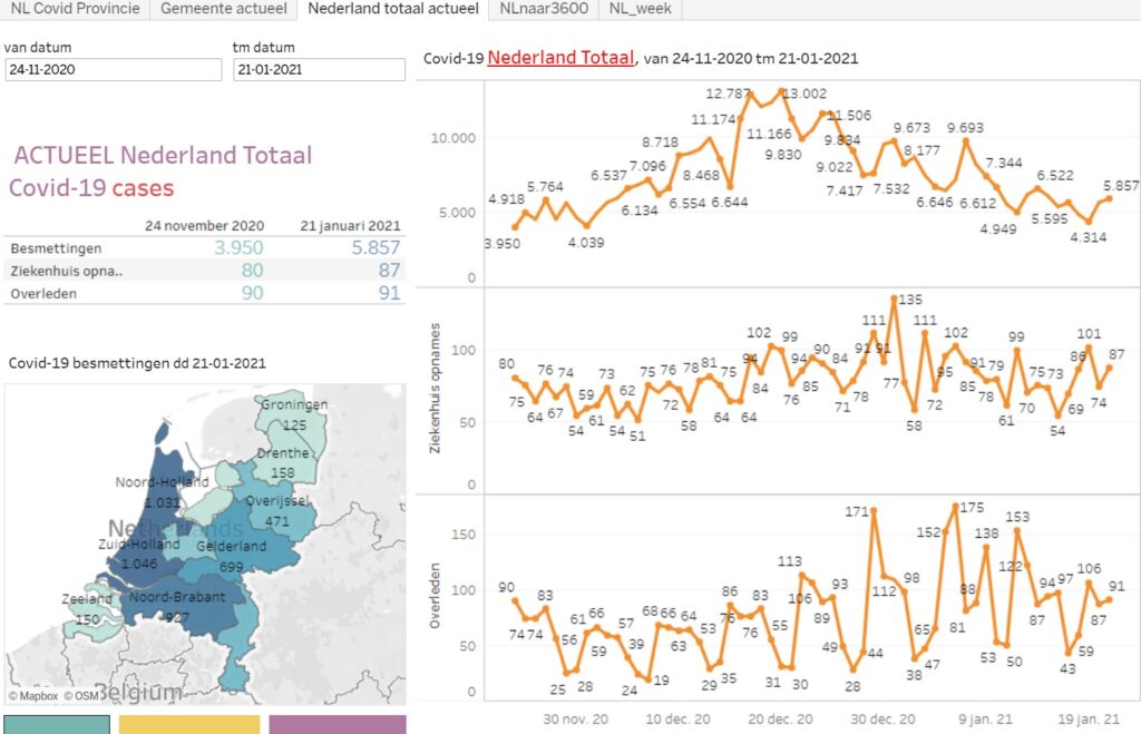 Op donderdag 21 januari zijn er 5857 nieuwe besmettingen geteld.