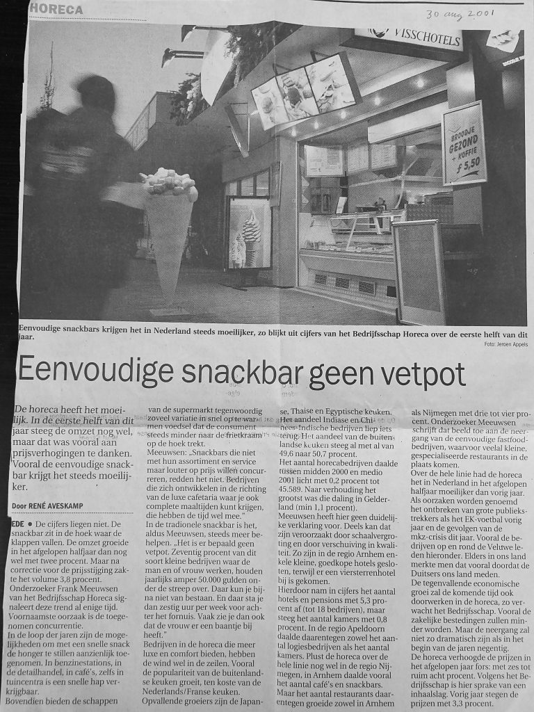 Ik gaf toelichting op de laatste horeca-cijfers. De eerste helft van het jaar steeg de omzet nog wel, maar dat was vooral te danken aan prijsverhogingen. Vooral de eenvoudige snackbar krijgt het steeds moeilijker.