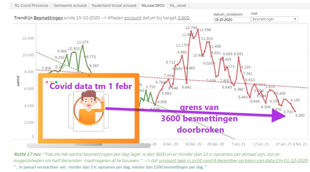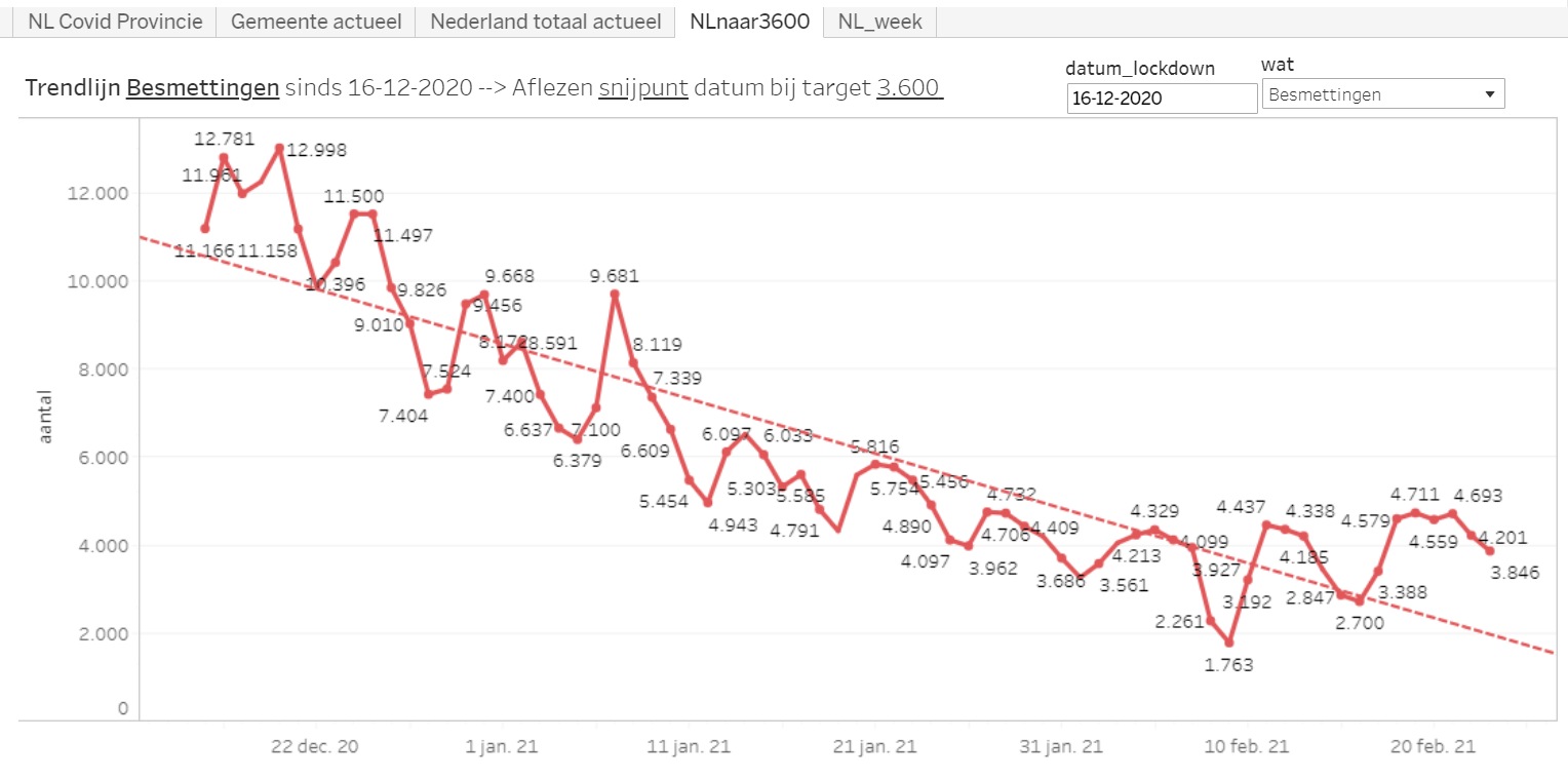 Op 1 februari scheef ik hier over de dalende lijn in corona-besmettingen die steeds vaker onder het niveau van 3600 per dag lag.