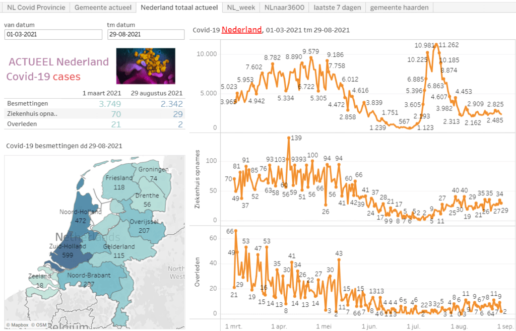 Laatste week augustus nog weinig verbetering Covid-cijfers