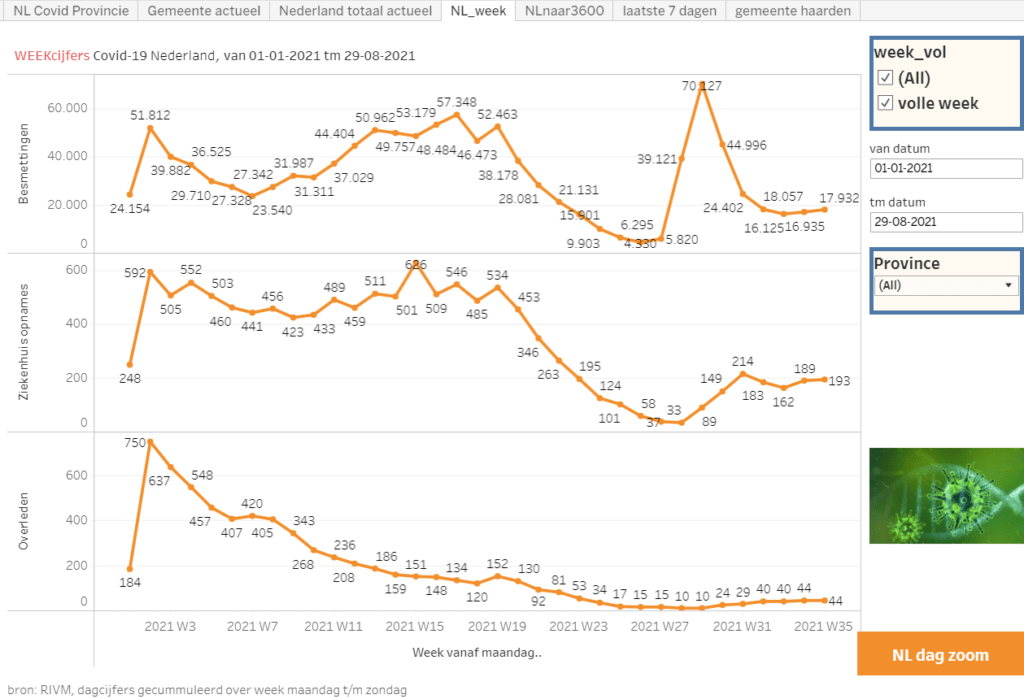 Het week-op-week beeld vertoont nog weinig progressie richting aanvaardbare lage aantallen.