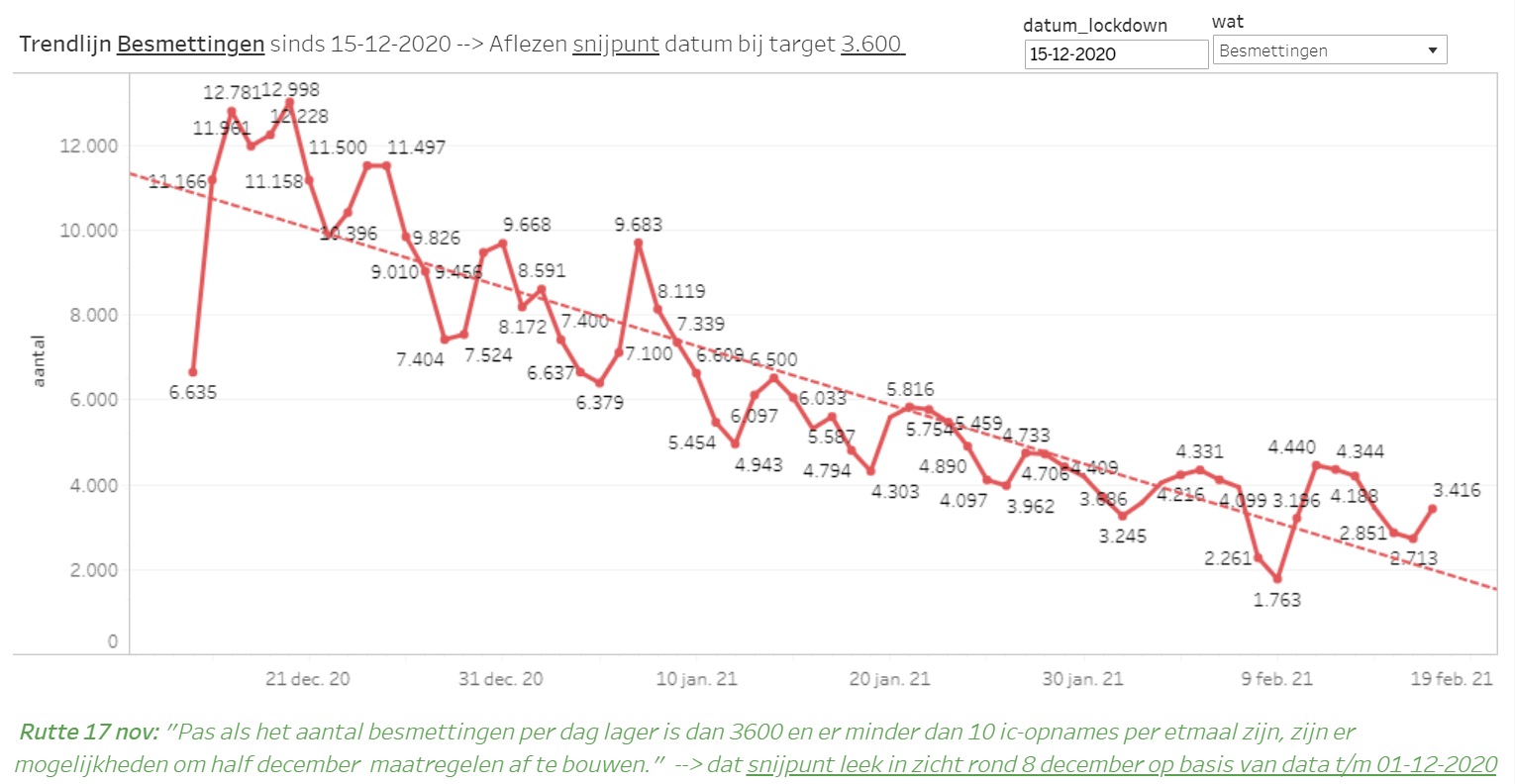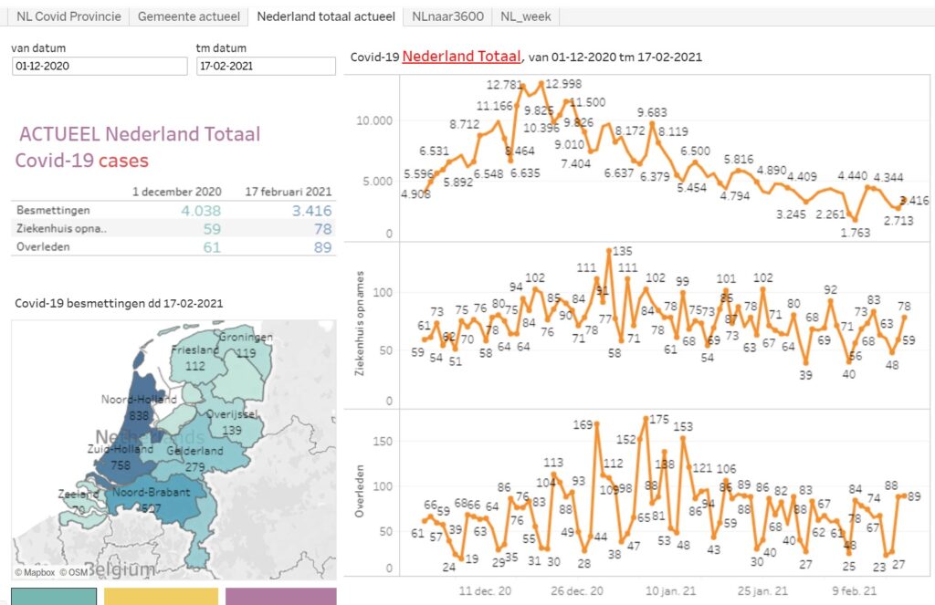 Kijken we naar de Corona-tests, dat zien we de aantallen positieve gevallen steeds vaker onder de 3600 per dag liggen.