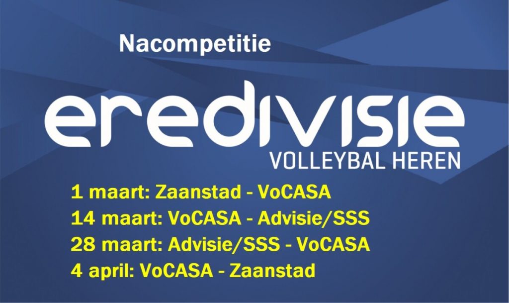 Het programma van de nacompetitie voor VoCASA Heren 1 is bekend.